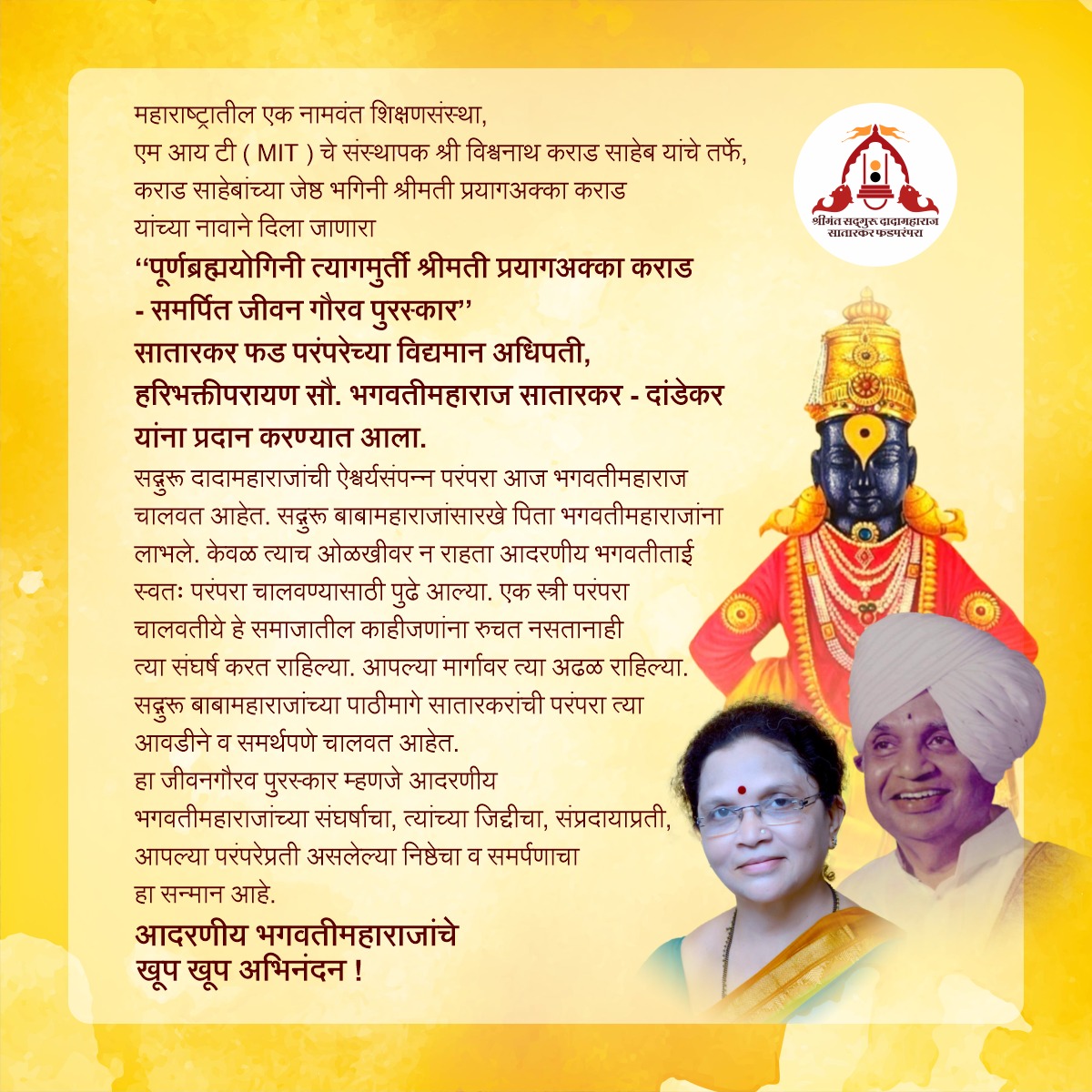 श्री सद्गुरू दादा महाराज सातारकर फडाचा 110 वा पायी दिंडी सोहळा याचे सर्व updates आणि वर्षभरातील ईतर ही सर्व कार्यक्रमांची माहिती, व्हिडिओ व फोटो खालील Instagram, YouTube आणि Facebook वर उपलब्ध आहे, Logo वर क्लिक करावे